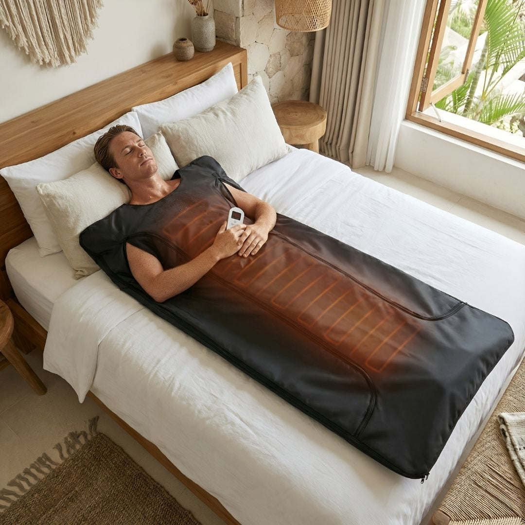 A full sauna session used to mean a gym membership, a spa booking, or a $3,000 installation. This blanket zips around your body, heats up to 176°F using far-infrared carbon fiber elements, and gives you the same deep, sweating warmth in 20 minutes flat — on your bed, on your floor, whenever you want it.
