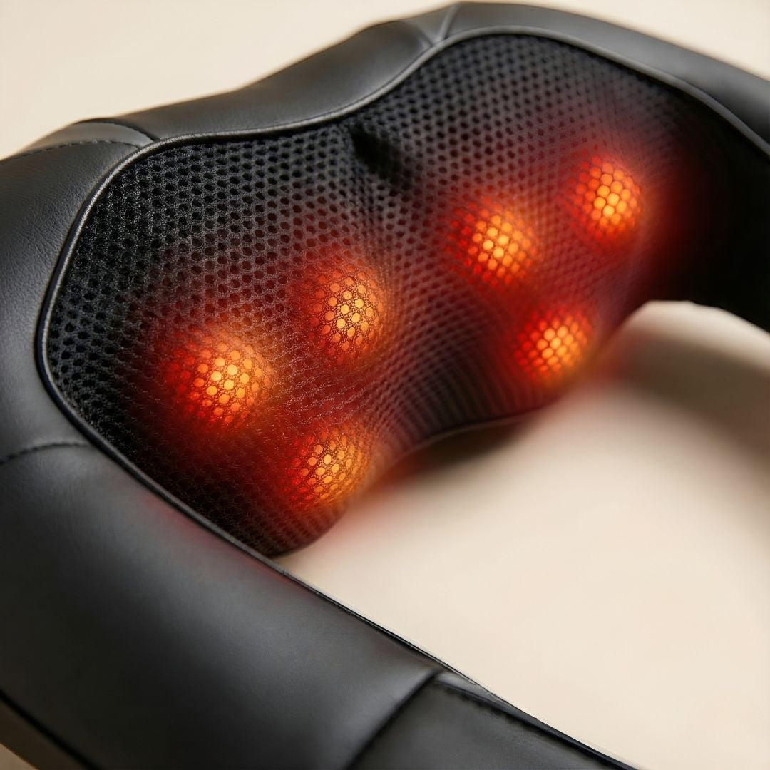 Eight rotating massage heads create a slow, rolling kneading motion that feels hands-on and deeply soothing. The pressure moves across tense areas to help release tightness and encourage full neck and shoulder relaxation.