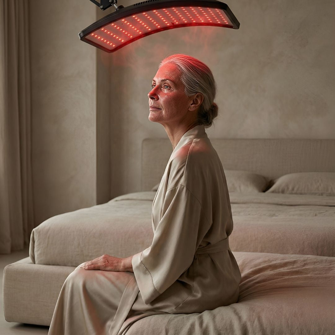 At the core of this system is a high-density array of 120 LEDs, engineered to deliver consistent red and near-infrared light across a wide treatment area. The panel combines 660nm red light with 850nm near-infrared light, creating layered exposure that feels deeply warming and evenly distributed rather than sharp or intense.